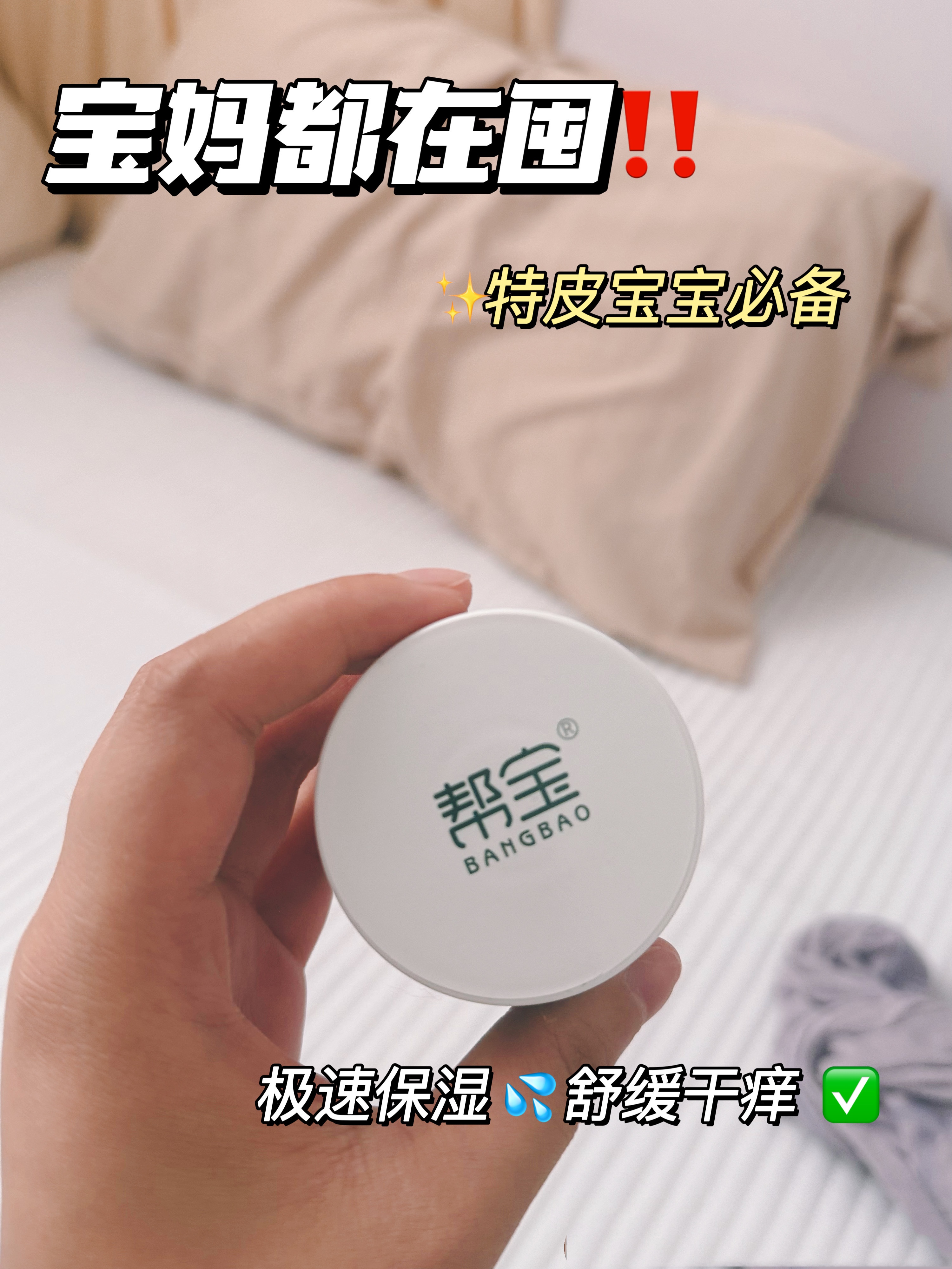 宝宝湿疹不可怕,选对方法是关键。帮宝提醒各位宝妈:面对湿疹切勿盲目用药,温和修护+科学预防才是根本。让帮宝湿疹护理膏守护宝宝娇嫩肌肤,让“宝宝湿疹怎么处理和预防”不再是难题,陪伴宝宝健康快乐成长!