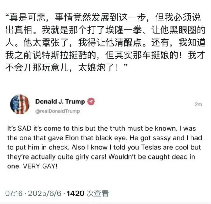 商业与政治的钢丝绳 马斯克与特朗普的这场对决,本质上是一场关于权力与资本的博弈。当商业领袖试图用金钱撬动政治杠杆时,往往忘记了政治漩涡的吞噬力远超想象。如果马斯克真要撕破脸干到底,我押特朗普赢,美国的深层政治有多么恐怖马斯克应该很清楚,就连那么恐怖的深层建制派,被特朗普一个人压的全体起立都没斗过特朗普,马斯克怎么玩?