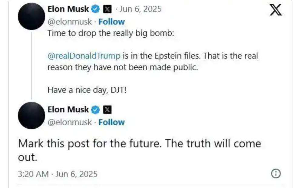 特朗普的反击来得迅猛而致命。他在社交媒体上连发数条威胁,声称要终止SpaceX价值220亿美元的政府合同,并嘲讽马斯克“失去耐性”“疯了”。更具杀伤力的是,他暗示将切断特斯拉的联邦补贴——这个每年为马斯克带来数十亿美元现金流的“生命线”。 作为回应,马斯克上演了一场堪称教科书级的“极限施压”。他先是宣布立即退役NASA依赖的“龙”飞船,让美国载人航天计划瞬间陷入瘫痪风险;随后又在凌晨三点甩出“王炸”:@特朗普账号爆料其名字出现在爱泼斯坦案档案中,直指这是档案未公开的真正原因。这场舆论战的硝烟迅速蔓延至资本市场,特斯拉股价在24小时内经历了从暴跌到盘后再跌3%的“自由落体”。