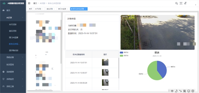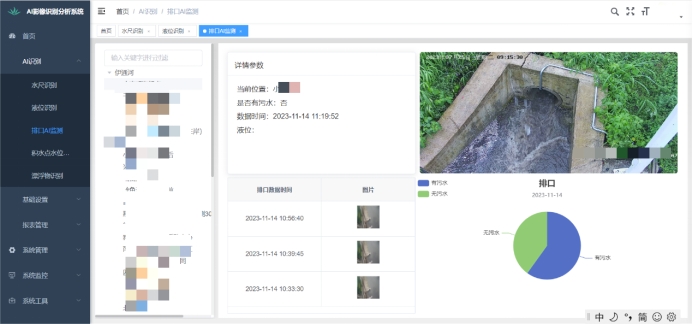 AI图像识别平台在监测中能够表现出高精度识别能力。通过深度学习和优化算法,平台能够准确识别出不同类型的监测点位(积水点、溢流口、河道等)的各种异常情况。此外,平台还具有较强的泛化能力,能够适应不同场景下的监测需求。这种高精度识别和泛化能力使得AI图像识别平台在水务工作中具有广泛的应用前景。