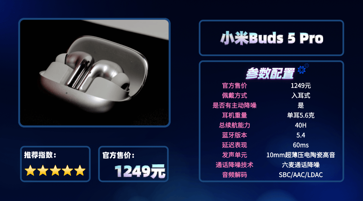 小米Buds 5 Pro在外观设计上走的是经典的入耳+长柄方案,整体佩戴感受比较舒适,入耳稳固,不会产生明显压迫感。长时间佩戴下来也没有勒耳朵的感觉,适合通勤、运动或者长时间办公时使用。