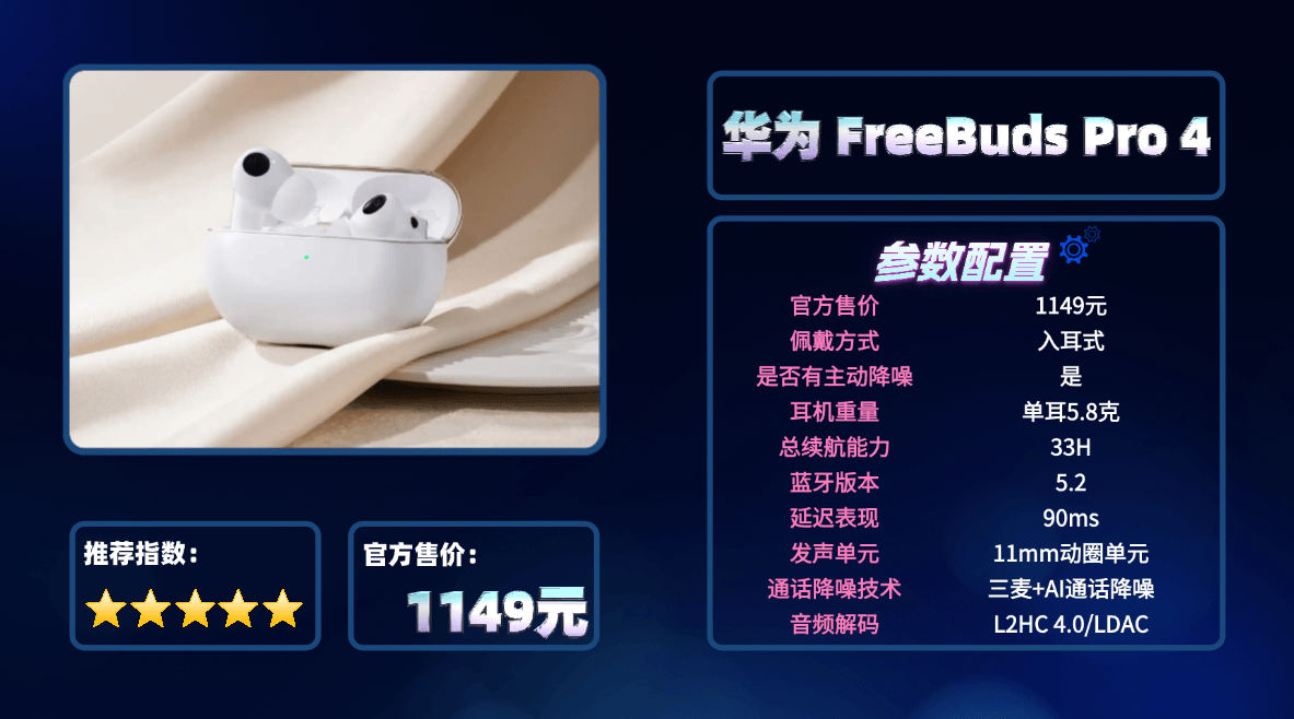 音质上,FreeBuds Pro 4采用双驱动单元,低频有力量感而不轰头,高频解析清晰,中频人声饱满,整体听感均衡自然。支持LDAC和华为自研的L2HC无损协议,如果搭配华为手机使用,音质体验尤其出色。无论是流行、电子还是现场感较强的音乐,都能感受到层次分明的声场和良好的解析力。