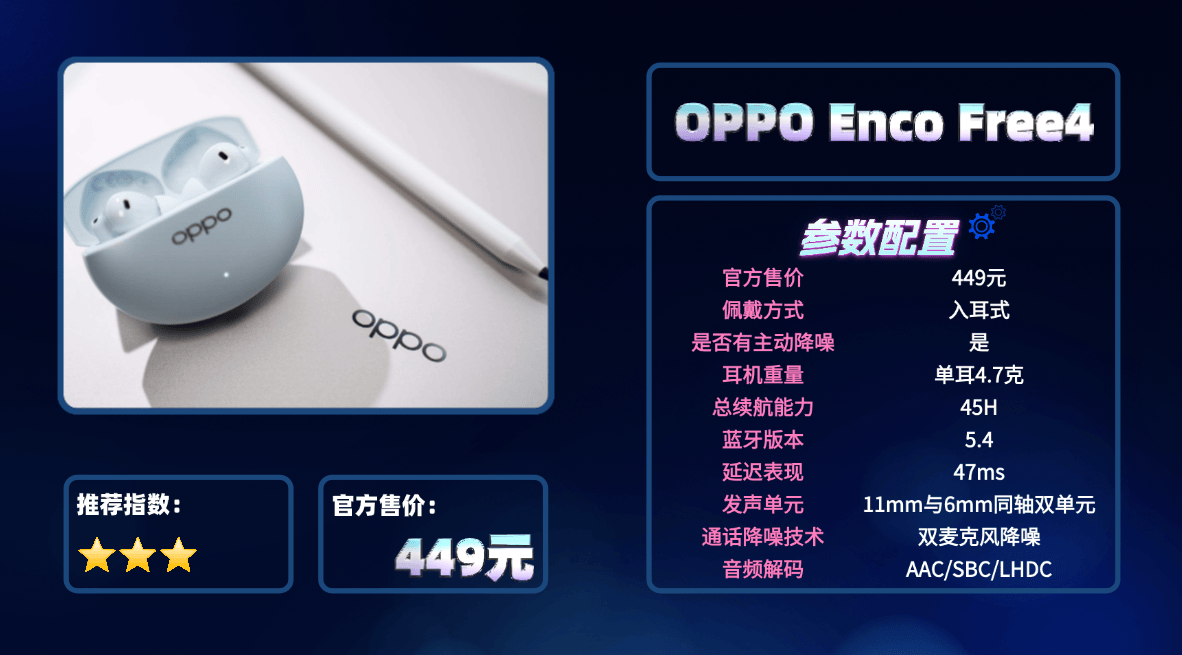 音质表现上,Enco Free4采用11mm+6mm双动圈同轴单元,并与丹拿联合调校。中低频饱满,低音氛围感足,偶尔会有轻微轰头感,但整体不会让人觉得浑浊;中高频清晰通透,人声自然,刷歌时不需要频繁调音效。