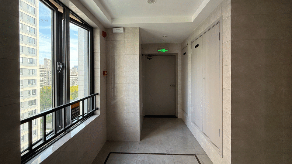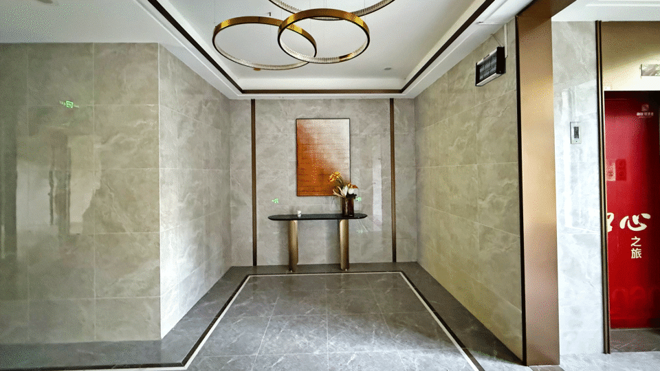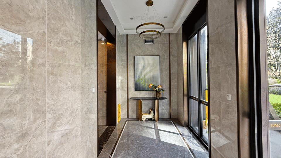 单元厅内部艺术吊灯、装饰画、装饰茶几都没有缺席,大开间玻璃也非常亮堂,标准层电梯厅装修风格和材料与一楼保持一致,好评。