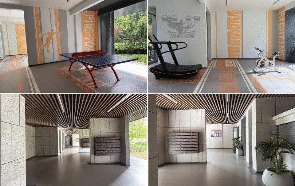 架空层整体比较空旷,部分配有健身和运动器材,但数量均比较少,在同期算是常见,有提升空间。