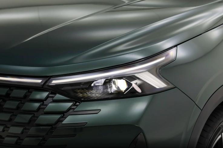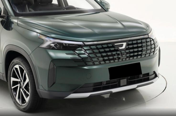 在车漆方面,新车这次实车展示的哑光绿配色在光线环境中效果略显高级,随光线角度的变化,会呈现出光影错落的交织效果,同时车尾的轮廓和上一代现代途胜有些相似,乍一看有种加长版的既视感。与此同时,舷窗上方采用熏黑设计,带来了悬浮式车顶效果。另外,车顶、门把手、前后轮眉、车门下边缘等位置均采用无喷漆材质覆盖,设计感追随主流审美,兼具实用风格和时尚感。