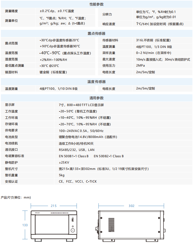 搭载稳定的温度控制镜面与先进光路检测系统,响应速度达1℃/sec(加设定时间),强制结霜技术确保低温低湿场景下的测量精度,提升复杂环境的检测效率。