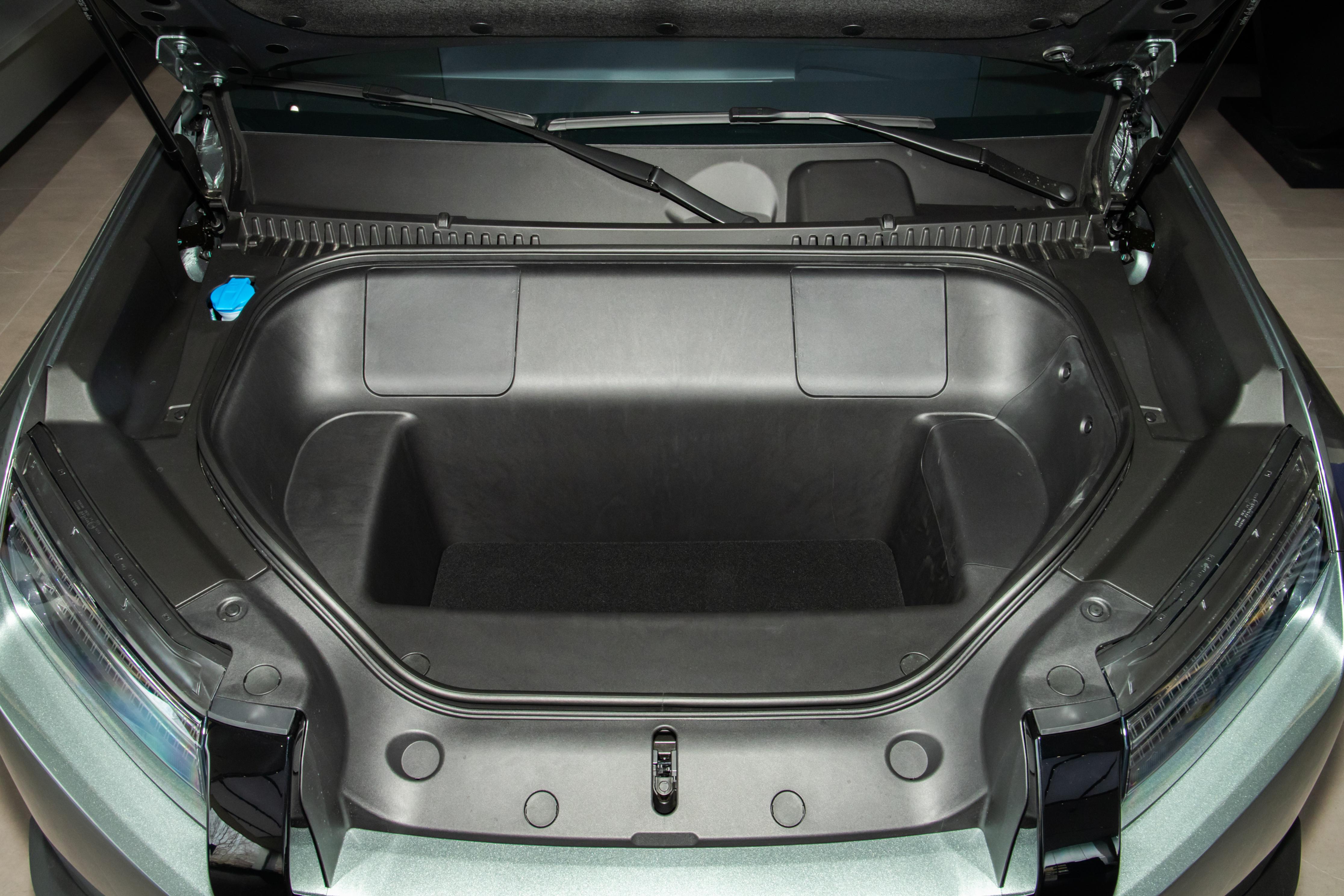 根据车身的尺寸,可以看出这款车的空间相当不错。目测178cm的个子坐在前排,头部有一拳两指的空间;后排头部一拳、腿部两拳,空间很宽敞。前排座椅下方还有可调脚窝,能调节到舒适的地方,大大提升了后排的舒展度,横向坐三个人也很舒适。全车的储物空间也相当丰富,如150L的电动前备箱,就很实用,能放下20英寸行李箱;车尾小书包工具箱,放充电枪和工具正合适。后备厢常规容积家用足够了,后排座椅按比例放倒后是纯平的,并且变成一张大床房,可供我们旅途中休息使用。