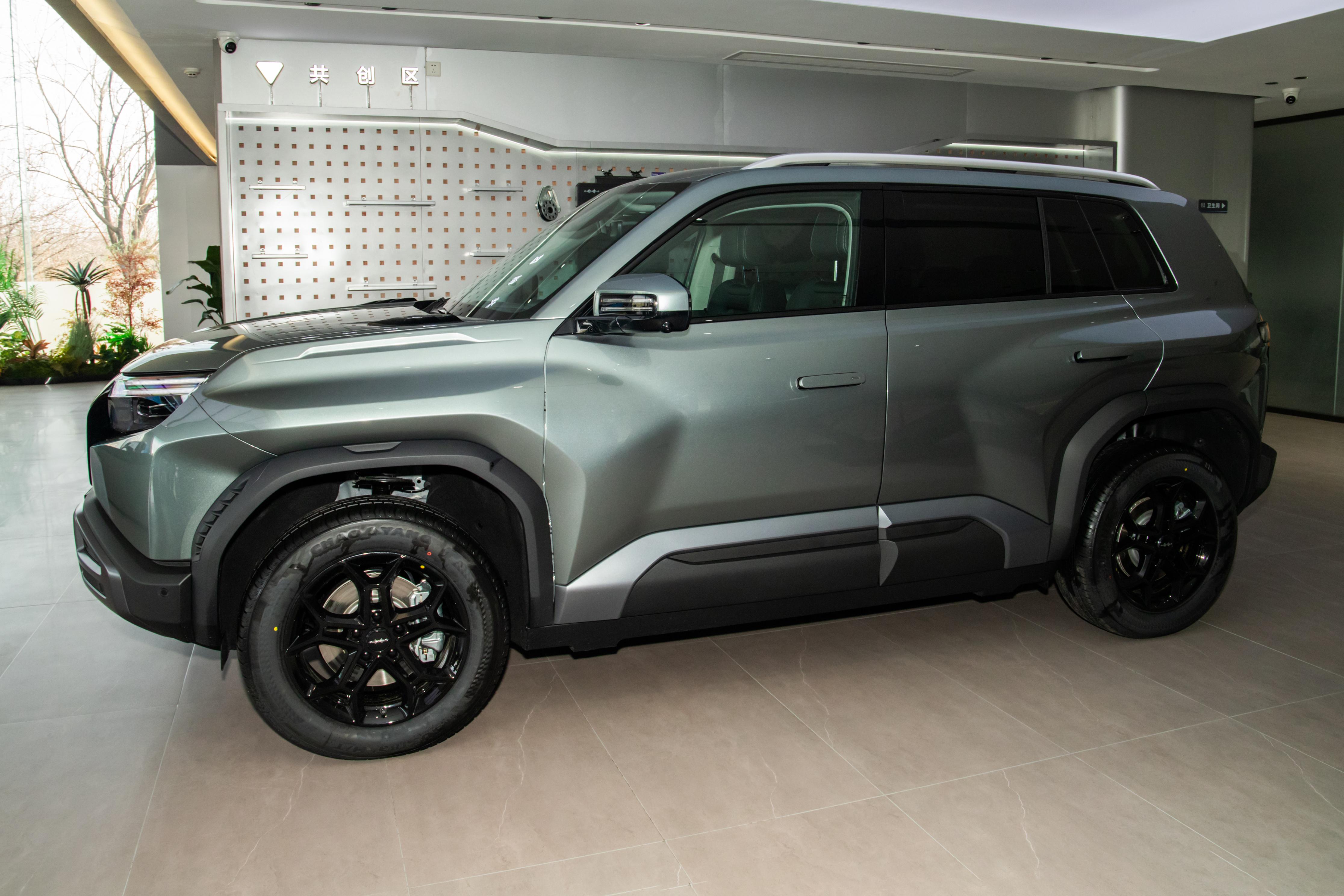以620km 后驱闪充版为例,先来看看外观,它的整体外观依然延续星战铠甲硬派机甲风格,车身尺寸没有变化,还有闪充专属细节,和四驱版在轮圈等细节上有明显区分。前脸的设计很有特色,封闭式黑化H型中网,和熏黑LED大灯、平行双线日行灯完全融为一体,整个车头显得干脆利索。引擎盖还有隆起的筋线,满满的力量感。前舱还有一个151L的电动前.备厢,能装下不少东西,感觉非常实用。参数化菱形切面星战前脸,很有看点,光影感超强,(可选激光雷达位),下包围更是强化了越野气场。