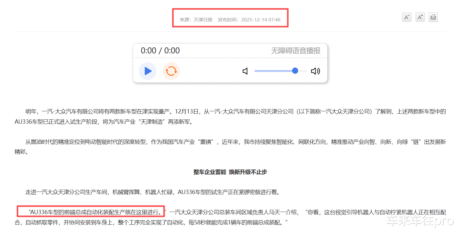 其中,内部代号为AU336的新车型正式进入试生产阶段,而更重要的是,一汽-大众明确给出了一个时间窗口:2026年至2027年,多款新车将密集投产。