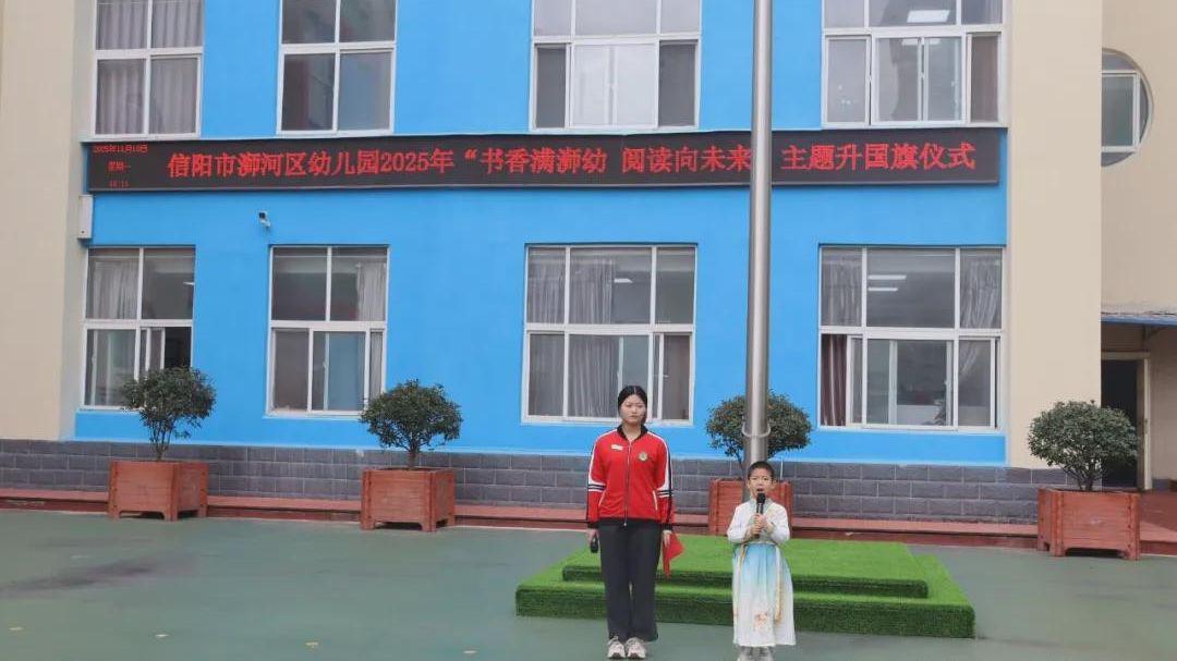 悠悠书香暖人心,最是书香能致远。此次特色升旗仪式将爱国教育与阅读推广有机结合,不仅激发了孩子们的家国情怀,更让阅读的种子深深扎根于幼儿心田。信阳市浉河区幼儿园通过国旗下讲话、文化表演、亲子互动等多元形式,有效营造了 “书香满园” 的校园文化氛围,引导孩子们以书为友、快乐阅读,在知识的海洋中健康成长。未来,幼儿园将持续深耕阅读教育,让书香成为童年最美的底色,陪伴孩子们奔赴更广阔的未来。(贾海燕 徐静怡)