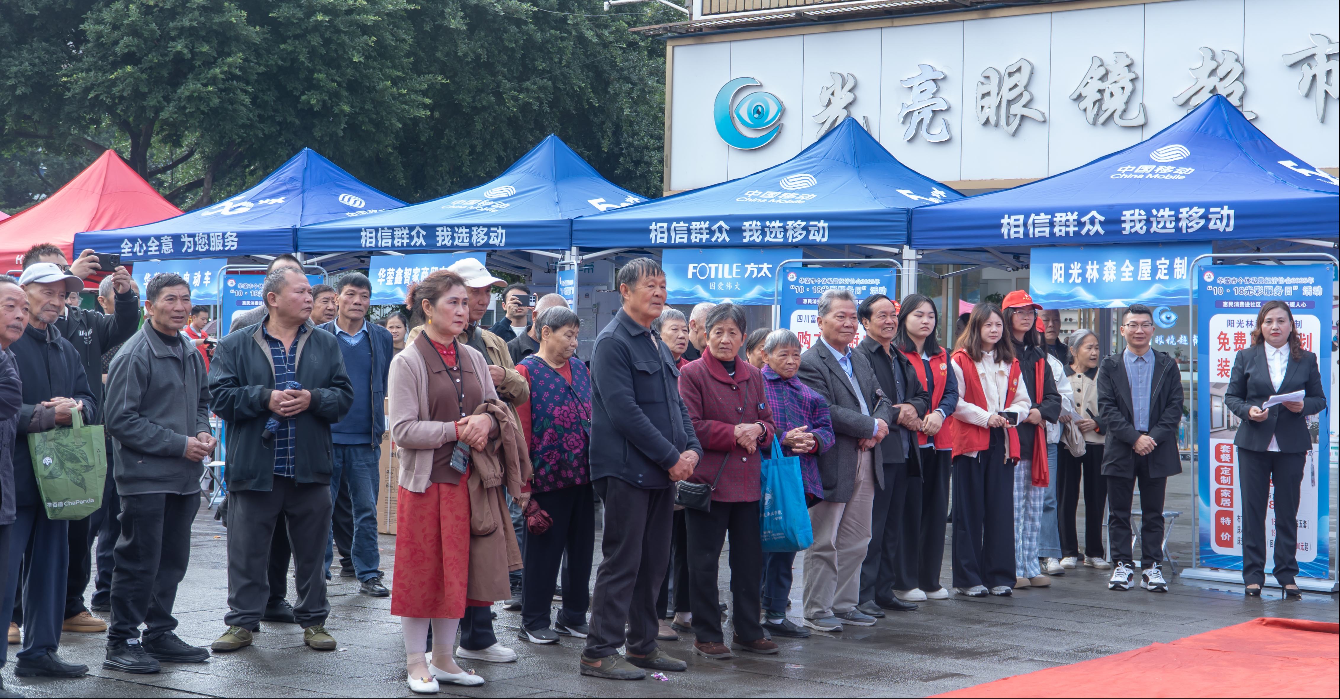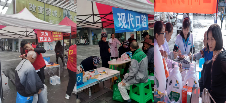 除了特色展销,现场还贴心设置了便民服务专区,为社区居民提供了一系列免费服务。华蓥市市场监督管局、新迪眼科医院等联合发力,为居民们提供了免费美发、牙齿眼科护理、基础义诊、消费者维权咨询等服务。在免费美发区,理发师们熟练地为居民修剪头发,让他们焕然一新;在义诊区,医生们认真地为居民检查身体,提供专业的健康建议;在消费者维权咨询区,工作人员耐心地为居民解答消费过程中遇到的问题,维护他们的合法权益。这些贴心的服务让居民们深切感受到了社会的关爱与温暖。