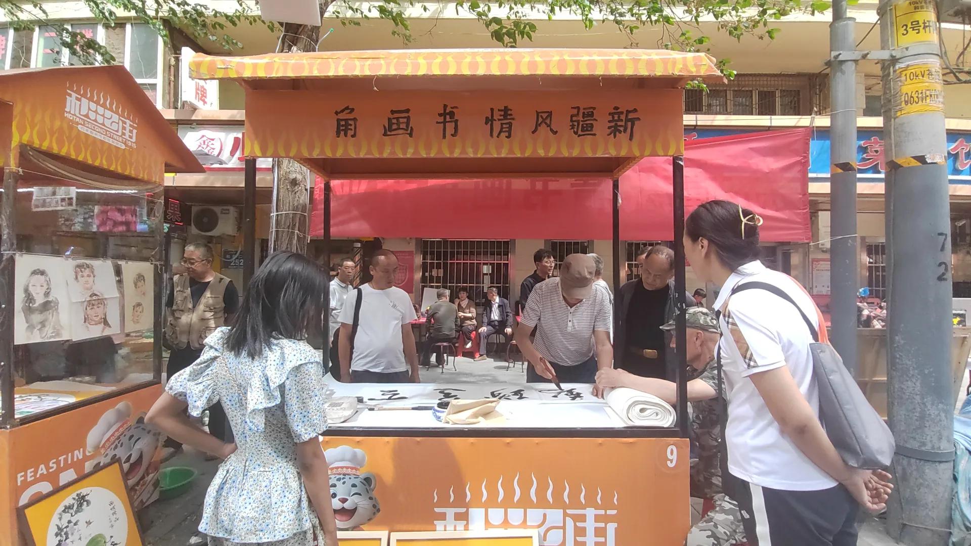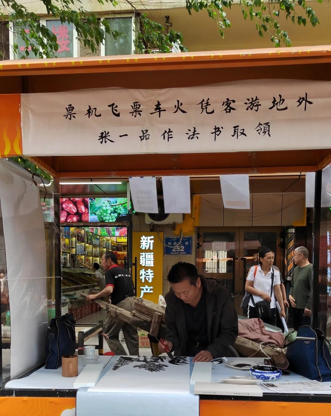 书法是中华文化的瑰宝,能够在和田二街这个充满活力的地方与游客们分享,我们感到非常开心。”