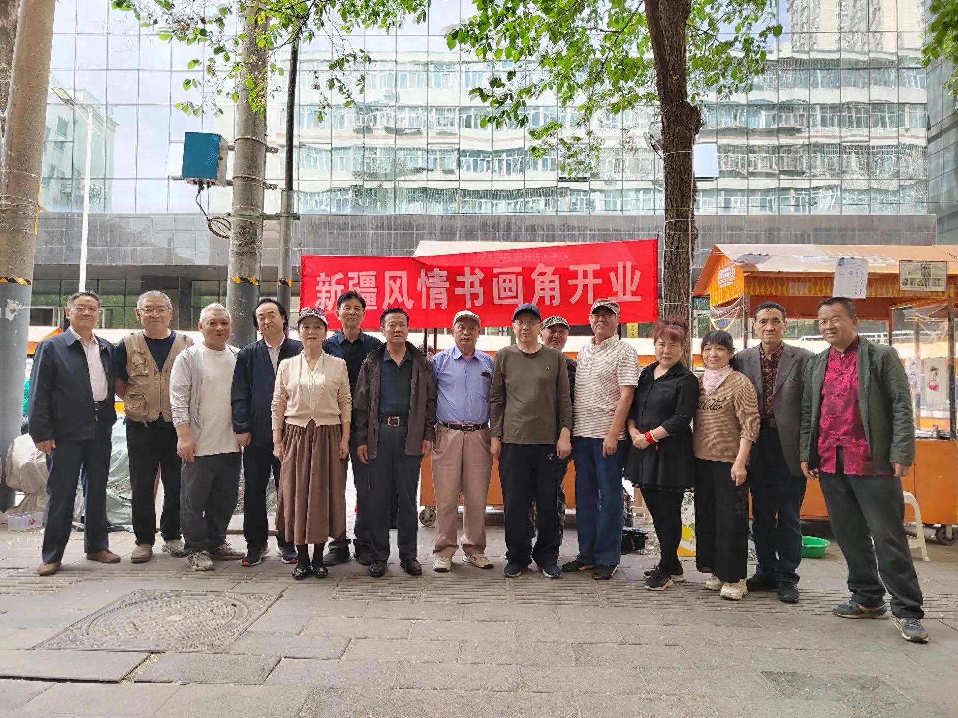 新疆知名书画艺术家们齐聚一堂,为这个充满艺术气息的角落增添了浓厚的文化氛围。