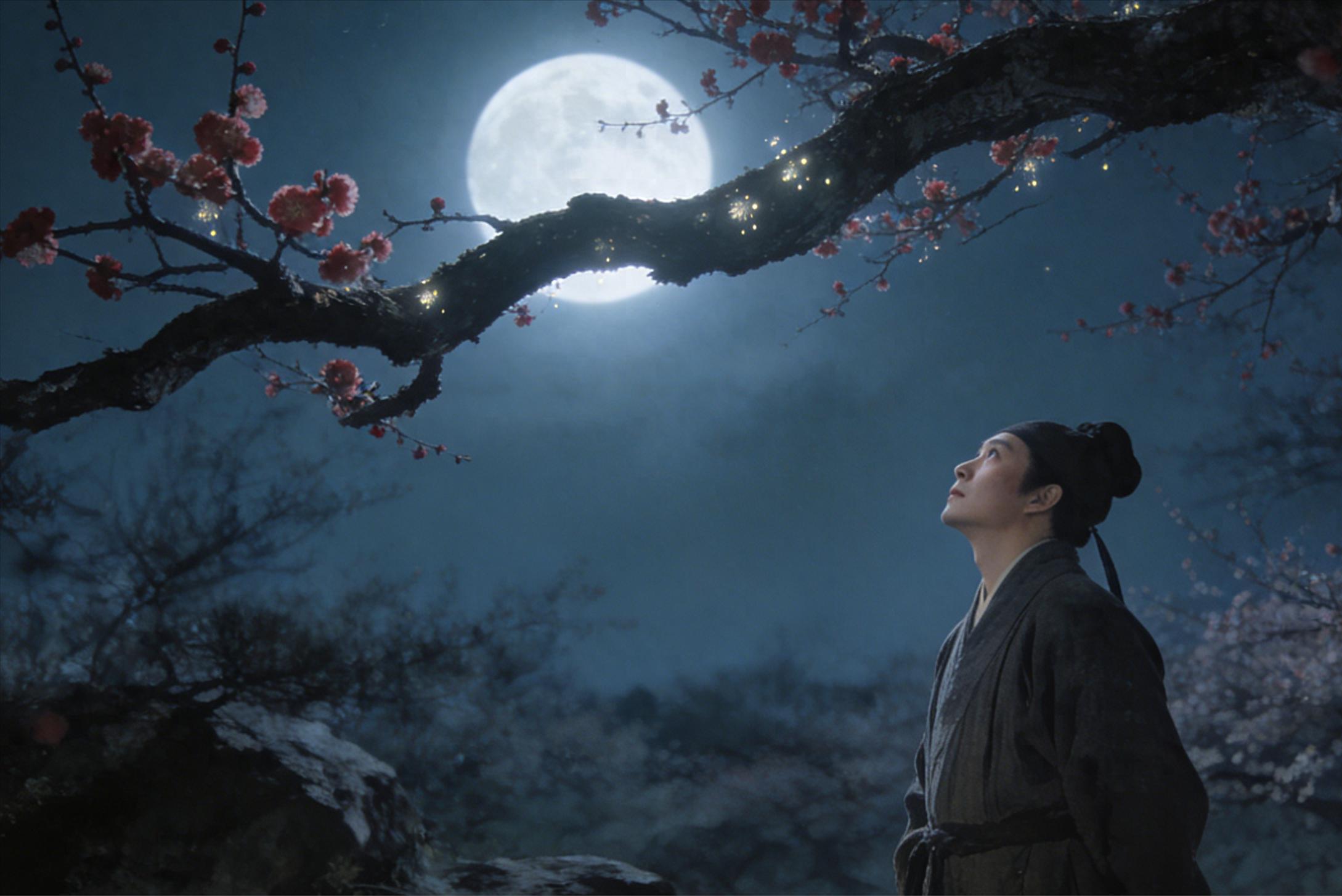 "相对无言自目成"化用《九歌》"满心兮不自持,聊目成兮只顷"典故,描绘梅月之间无需言语的默契神会。"目成"二字精妙点出这种超越语言的精神交流,月光浸润下的梅影与暗香浮动的花枝,在静默中完成了一场高雅的审美对话。这种"无言"的境界,恰是中国文人最为推崇的至高审美状态。
