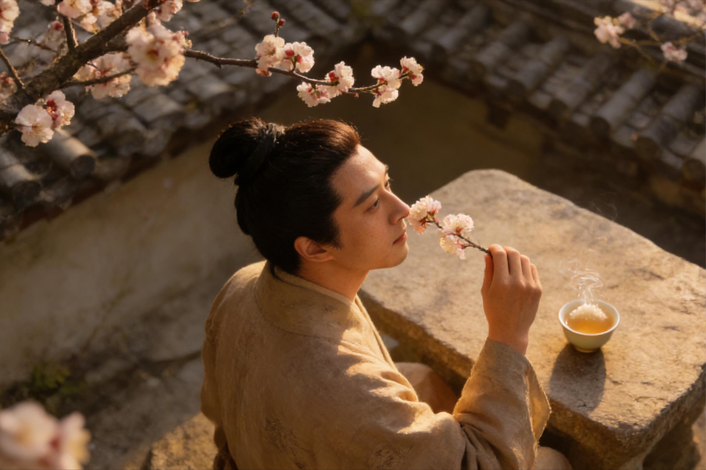 后两句“细挼玉糁浮杯面,犹自诗肠未属厌”将视角从赏梅转到品茶。“玉糁”形象地描绘出梅花花瓣如细碎美玉般飘落,浮于杯面,为茶增添了别样风雅。而“细挼”这一动作,尽显诗人的细腻与珍视。“诗肠未属厌”则直白地表达出诗人沉浸在此情此景中,灵感不断,对眼前的美好毫无厌倦之意,侧面烘托出梅花与茶所带来的精神享受之深。