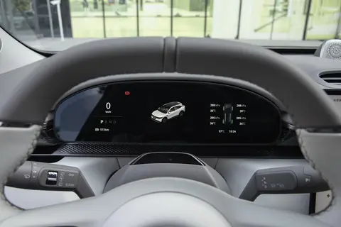 外观上,极氪 7X 采用了 Hidden Energy 的设计理念,以晨曦破晓照向天际的弧光为灵感,从 A 到 C 柱间勾勒出上扬顶线,赋予车身流畅的线条和强烈的张力。这种设计不仅让车辆外观更具动感,还巧妙地增加了后排与后备厢的空间,实现了美观与实用的良好结合。蚌式前舱盖设计是极氪 7X 的一大亮点,它几乎抹除了前舱盖与翼子板的拼缝,使车头部分看起来更加流畅和一体化,展现出豪华产品的精致质感。悬浮车顶的设计则让 A 柱与前舱的连接点隐藏在前舱盖下方,使得前窗、天窗与后窗的衔接更加自然流畅,营造出一种轻盈灵动的视觉效果。车辆侧面,后轮的弧度优雅地向外延伸,与拓宽的后翼子板曲面相得益彰,让车身侧面在视觉上更显丰盈且充满动态张力,仿佛一款蓄势待发的运动跑车。再加上无框电动外后视镜、隐藏式水切、隐藏式后雨刮等细节设计,整车呈现出非常流畅的视觉感受,浑然天成,无论从哪个角度看,都能给人带来较强的视觉冲击。车尾部分,贯穿式的尾灯设计在点亮时辨识度较高,与整车风格相得益彰。不同的车身颜色选择,满足了消费者多样化的审美需求,无论是追求时尚个性,还是偏好沉稳大气,都能找到适合自己的那一款。