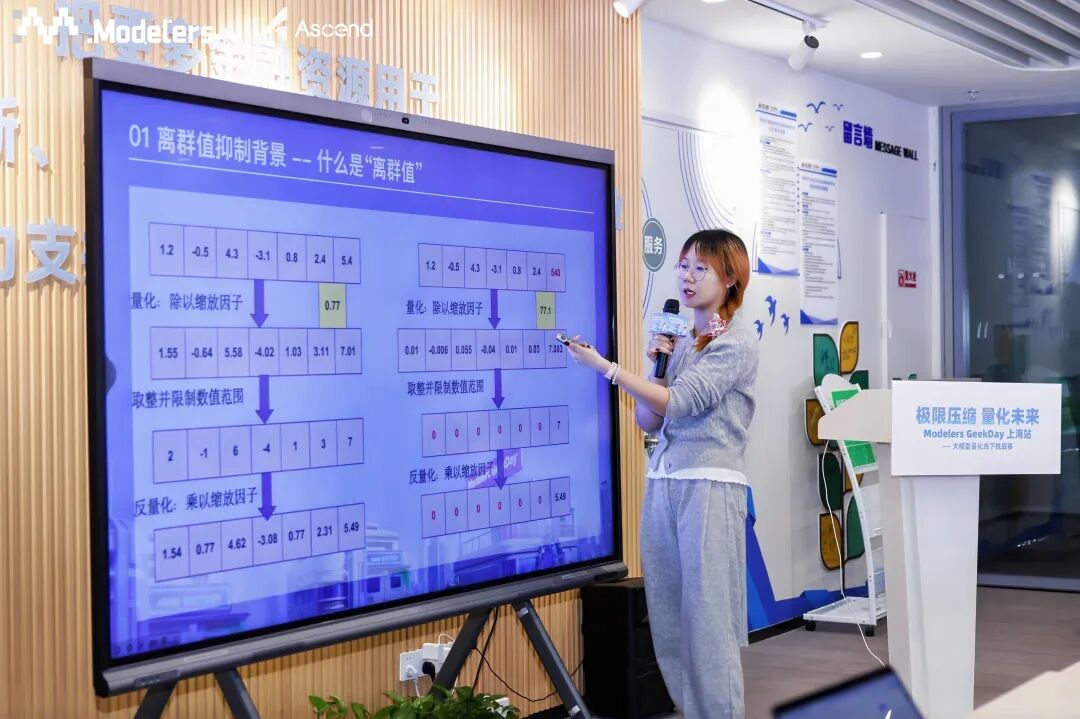 2026年3月28日,由魔乐社区主办、华为昇腾团队深度支持的「极限压缩量化未来」Modelers GeekDay 上海站在模速空间顺利举行。本次活动以“大模型量化”为核心主题,吸引了来自学术界与产业界的众多开发者参与量化挑战赛。参赛者来自上海交通大学、华东师范大学、上海科技大学、小鹏汽车、小宿科技、阿里巴巴、蚂蚁金服、腾讯、携程、中国工商银行、中国农业银行等多家知名高校与企业。