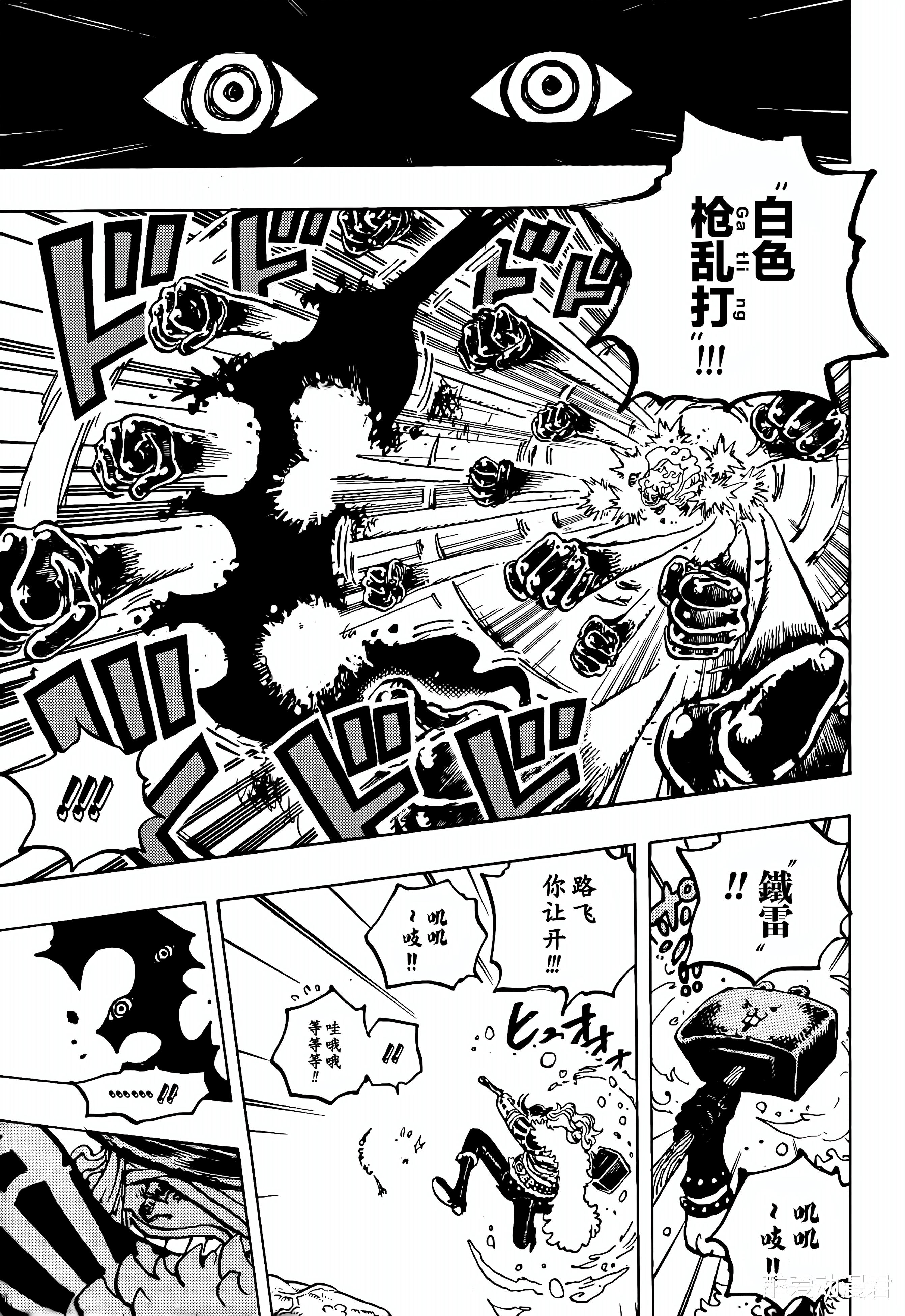 本话开始,路飞来到山治等人的身边,看到了被干掉的乌索普和布鲁克。路飞让其他人照顾两人,而他自己前去和伊姆开战,还说不要帮忙,因为洛基会乱来。
