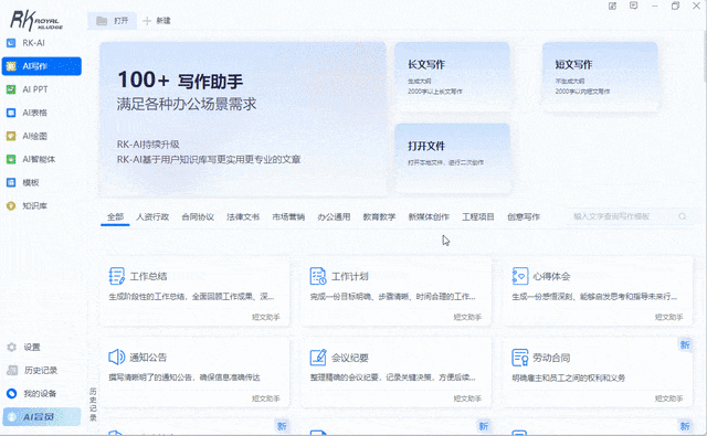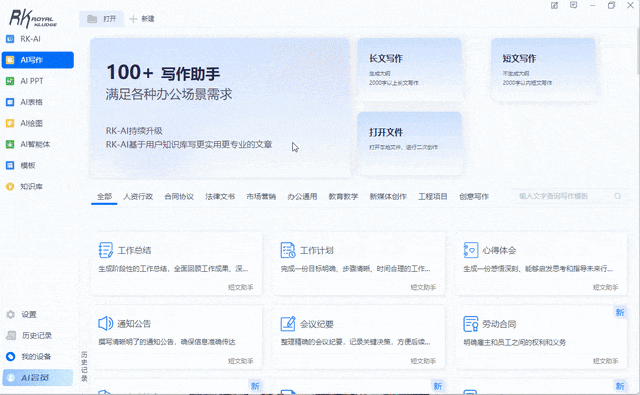 甚至可以用来直接编写小程序。实际生成的小程序,近乎完美。RKR87ProAI键盘通过一键唤醒调用AI,通过对话实现我们实际工作中的写作,制作PPT,表格,绘图甚至配音,阅读,翻译等,几乎涵盖了我们所有的日常办公所需,而不需要自行部署AI模型或者到专门的网站去实现,一方面极大的提高了我们的工作效率,另一方面,也让对电脑不熟悉的人能迅速实现AI融合,无需太多的操作,简化流程。