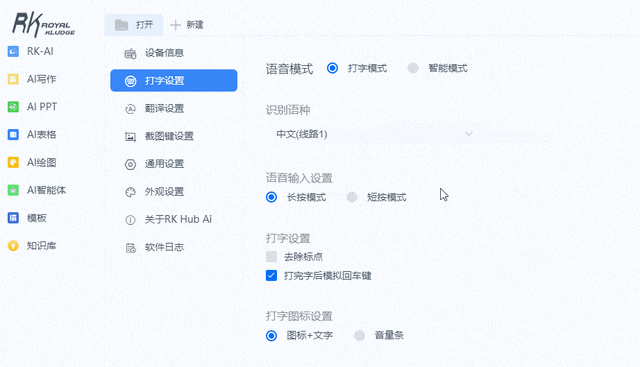 语音设置完成后,就可以开启RKR87ProAI键盘的AI人工智能之旅。激活AI按键后,按住F10功能键,就能进行语音打字,有了这个功能,对于很多一指禅成员,或者拼音不准的用户,可以快速进行录入,实际测试下来,准确度非常高。