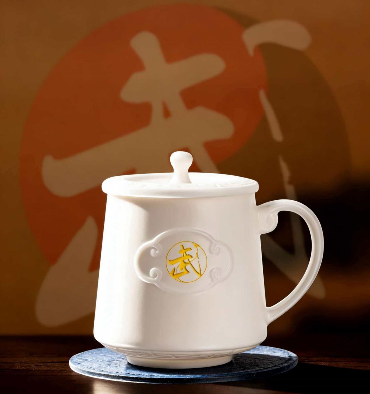 当首届“万里茶道”国际太极拳邀请赛上的武道锋芒,遇见德化白瓷的玉质风骨,便有了这盏承载刚柔之道的武道杯。“武”字刚劲有力,隐于其后的太极图流转不息,既凝聚着太极拳的武道之魂,也镌刻着赛事健儿同台竞技、奋勇拼搏的精神。