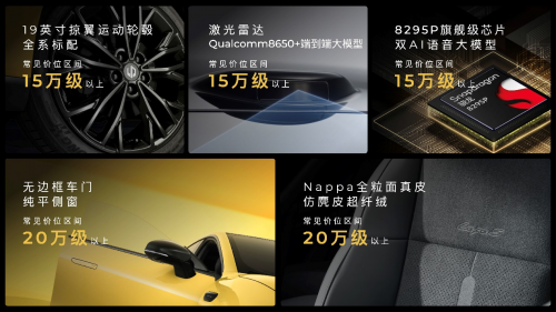 设计美学与实用主义在此交融。 无框车门、纯平侧窗与19英寸运动轮毂勾勒出拉风姿态,6款个性车色如情绪画布。座舱内,86%超高得房率打破轿跑空间魔咒,86%软包覆盖率与256色氛围灯营造豪华运动氛围。仿麂皮与Nappa真皮拼接的竞速灰内饰、12扬声器音响系统及1.02㎡全景天幕,让驾驶舱秒变私人LiveHouse。