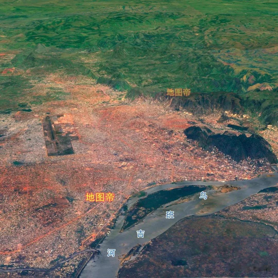 班吉市区在乌班吉河西北岸,城区海拔340-400米,市中心纬度是北纬04°22′24″。