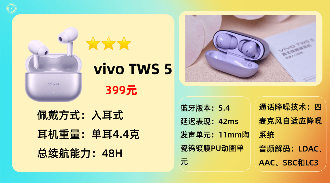 推荐品牌 7、V ivo T WS 5蓝牙耳机