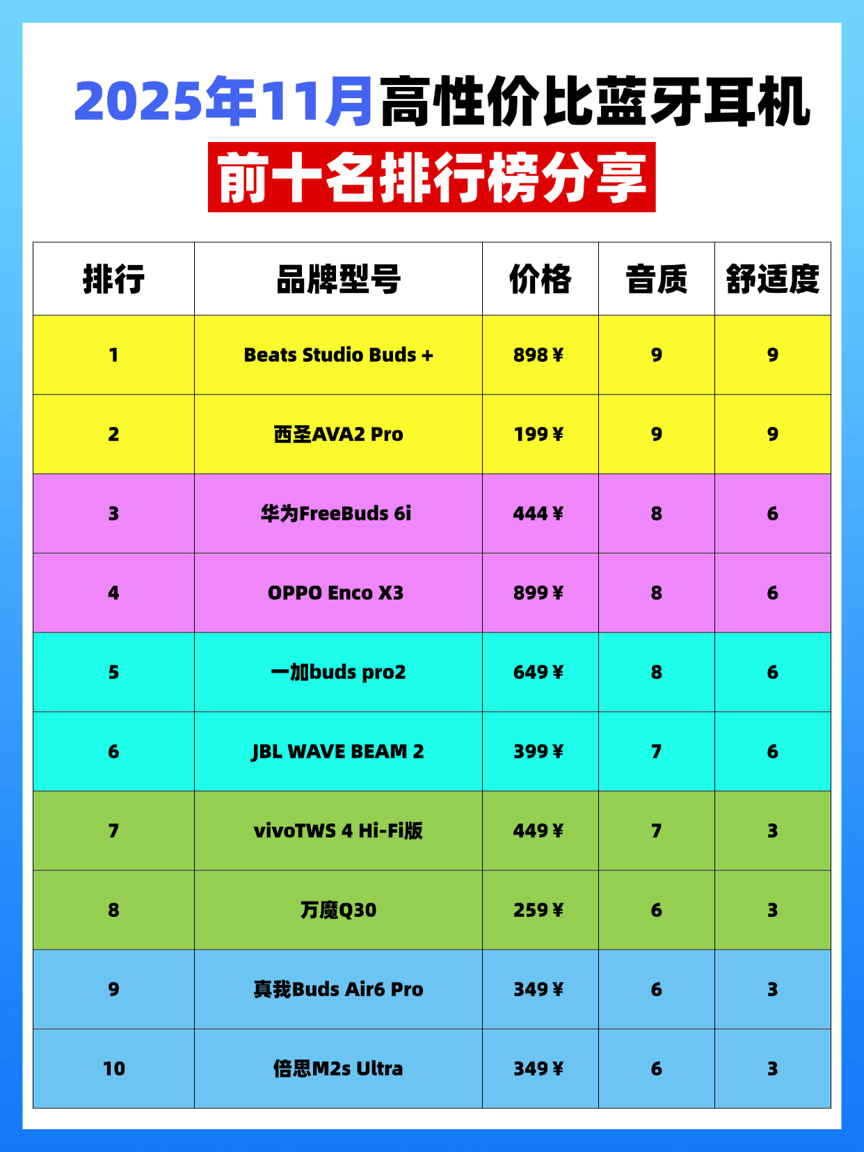 蓝牙耳机什么牌子的音质最好佩戴舒适?上文的十大音质最好的蓝牙耳机的品牌介绍中,我们核心围绕专业调校、舒适佩戴、品质可靠等优势特点展开,为大家详细介绍了优质蓝牙耳机的出众表现。希望这些选购要点与品牌解析能帮你理清蓝牙耳机哪个牌子质量好的思路,在节省预算的同时,精准锁定品质可靠、适配自身需求的款式,让每一次聆听都舒心流畅,让日常的通勤、运动、娱乐体验更便捷、更有幸福感。
