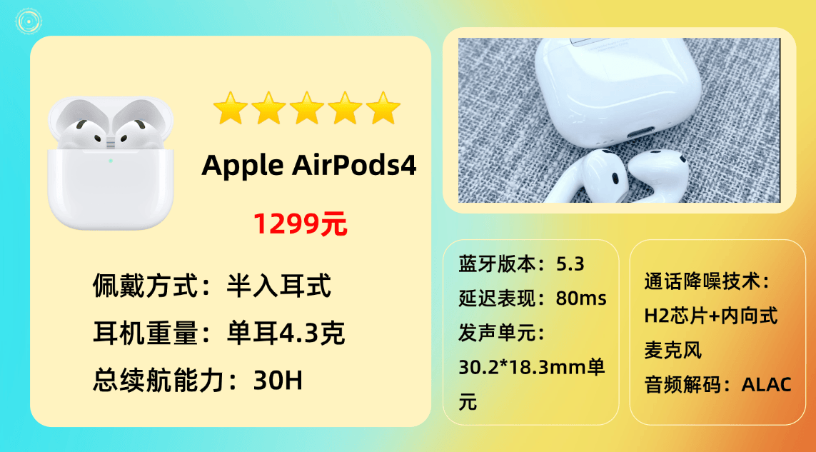 推荐品牌 8、苹 果A irPods 4蓝牙耳机