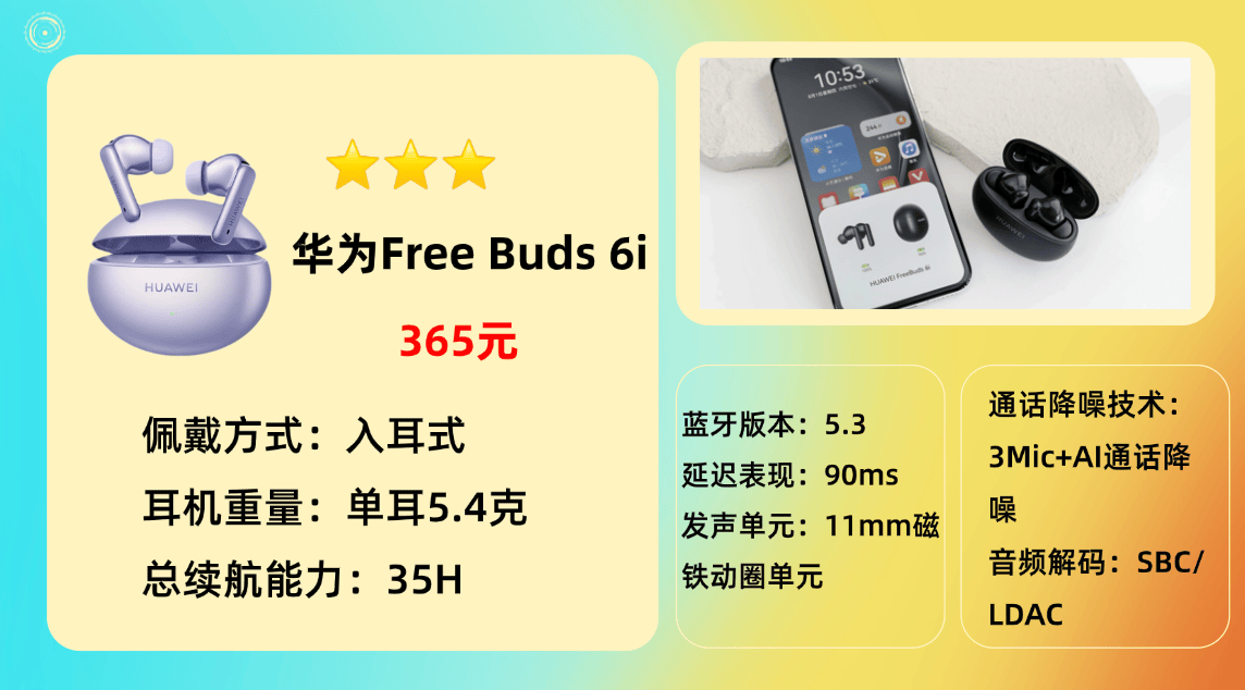推荐品牌 2、华 为F reeBuds 6i蓝牙耳机