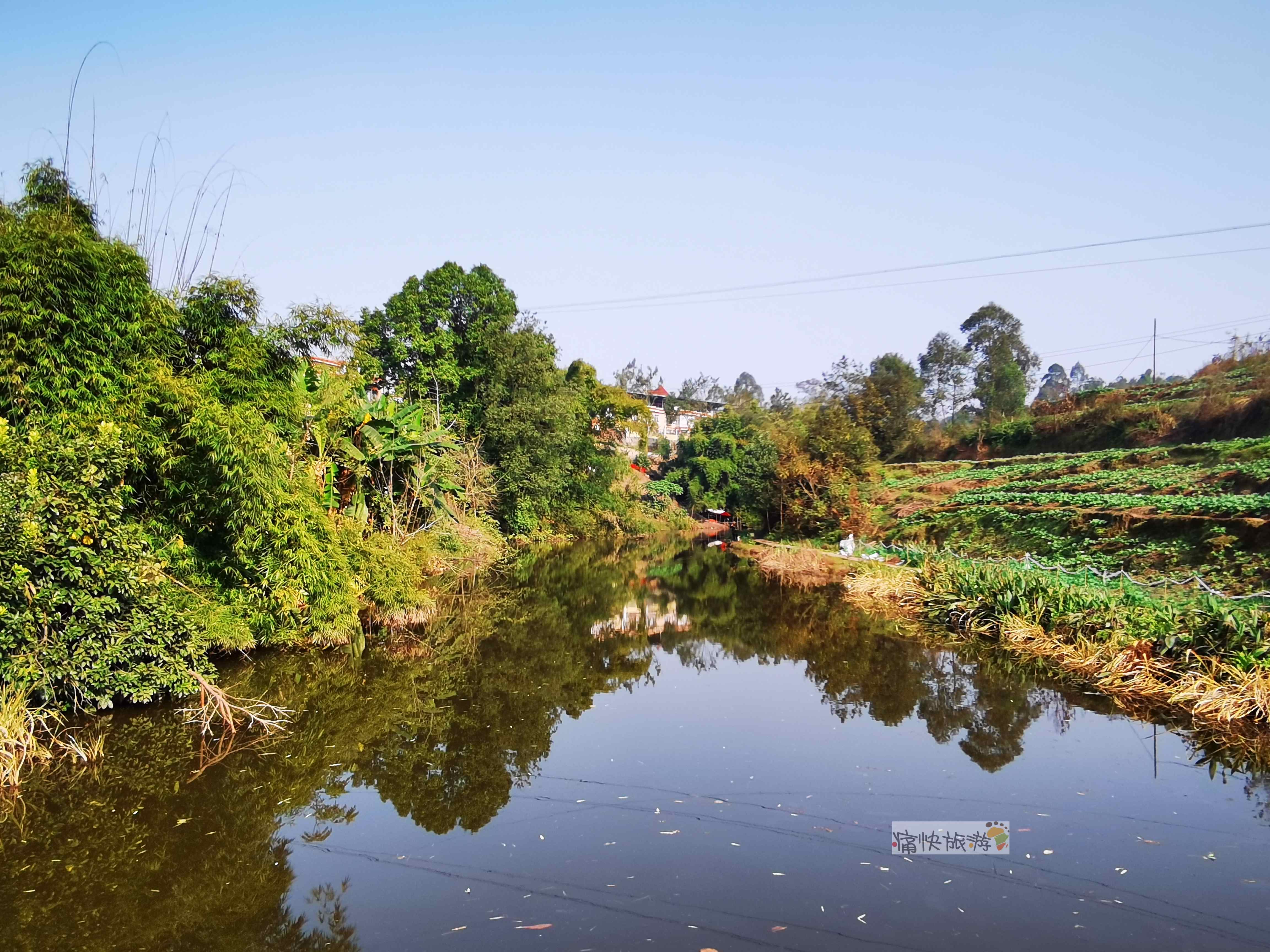 前行不远即为釜溪河右岸支流镇溪河,据1993版《富顺县志》记载,镇溪河又名白吉子河,发源于四川省自贡市沿滩区俞冲乡铁匠湾。此段河面并不宽阔,加之距离俞冲不远,估计离发源地很近。