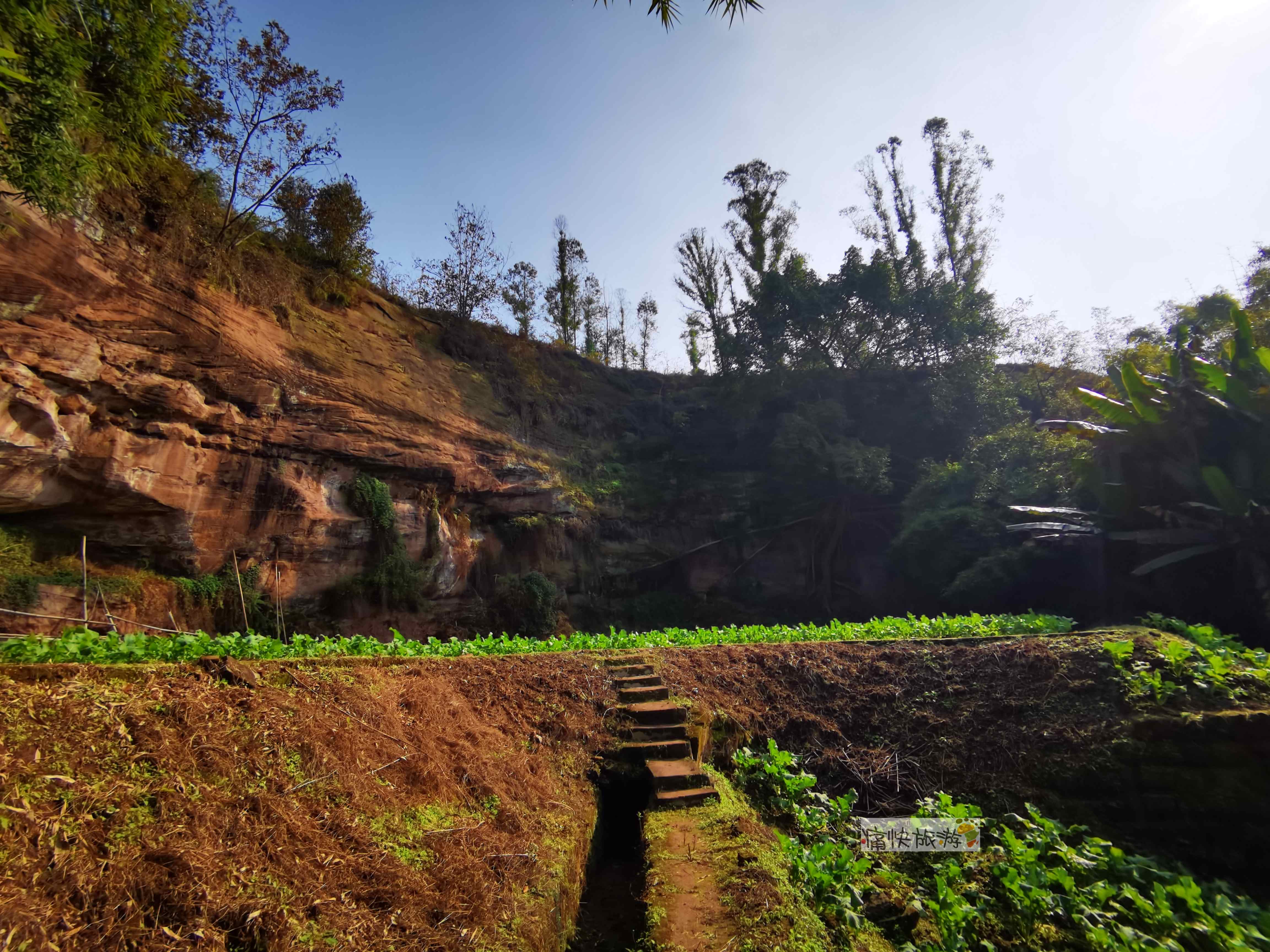 前方崖壁陡峭,下方有块面积不大的菜地,水渠也从明渠变为暗渠,确实有点像“世外桃源”。
