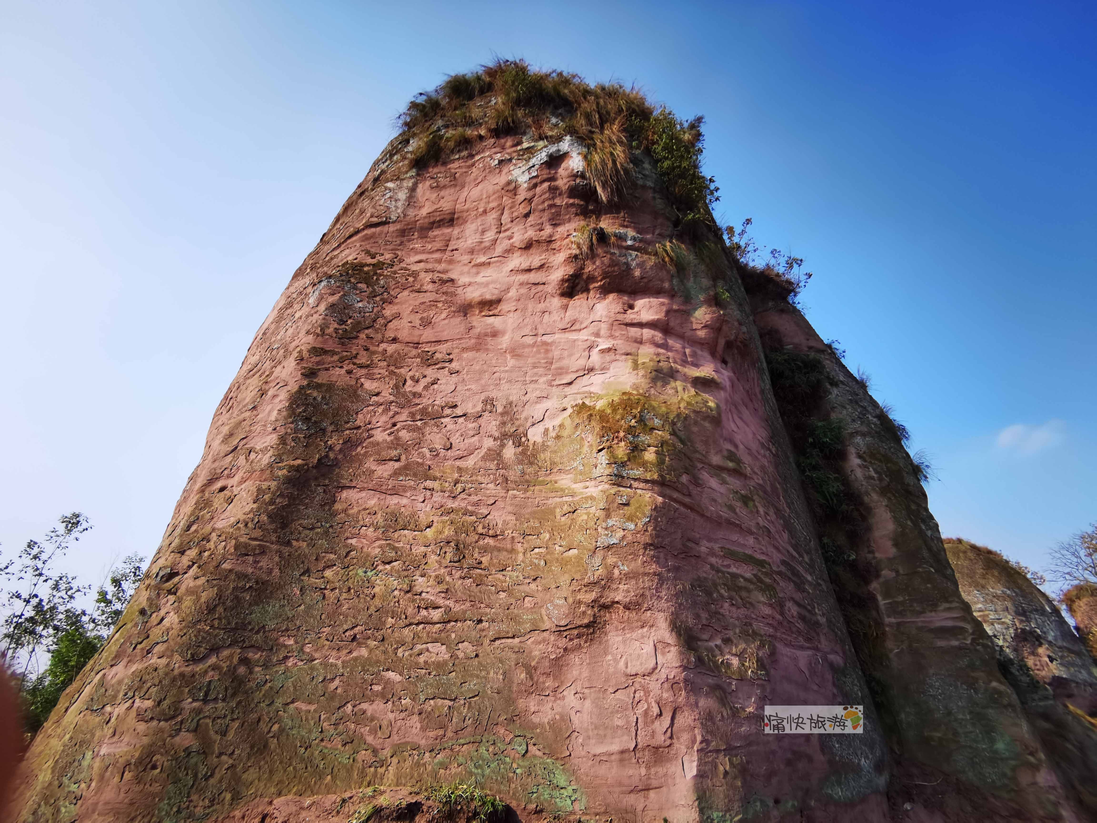 抵近发现山体确实有点泛红,非常陡峭,不易攀登。