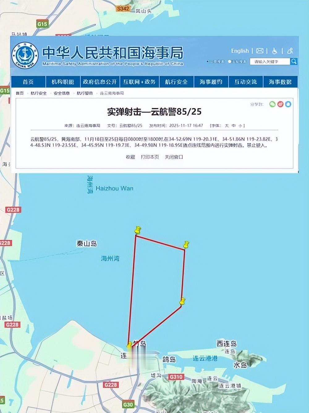 针对这种危险动向,中国海事局于2025年11月发布航行警告,在黄海中部开展实弹射击演习,演习区域紧邻中日敏感海域,形成有效战略震慑。