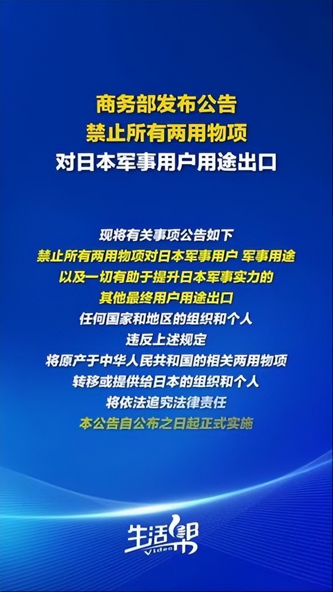 2026年1月,中国商务部发布新年第1号公告,全面禁止所有两用物项对日本军事相关用户及用途出口,封堵了转口漏洞与模糊地带。