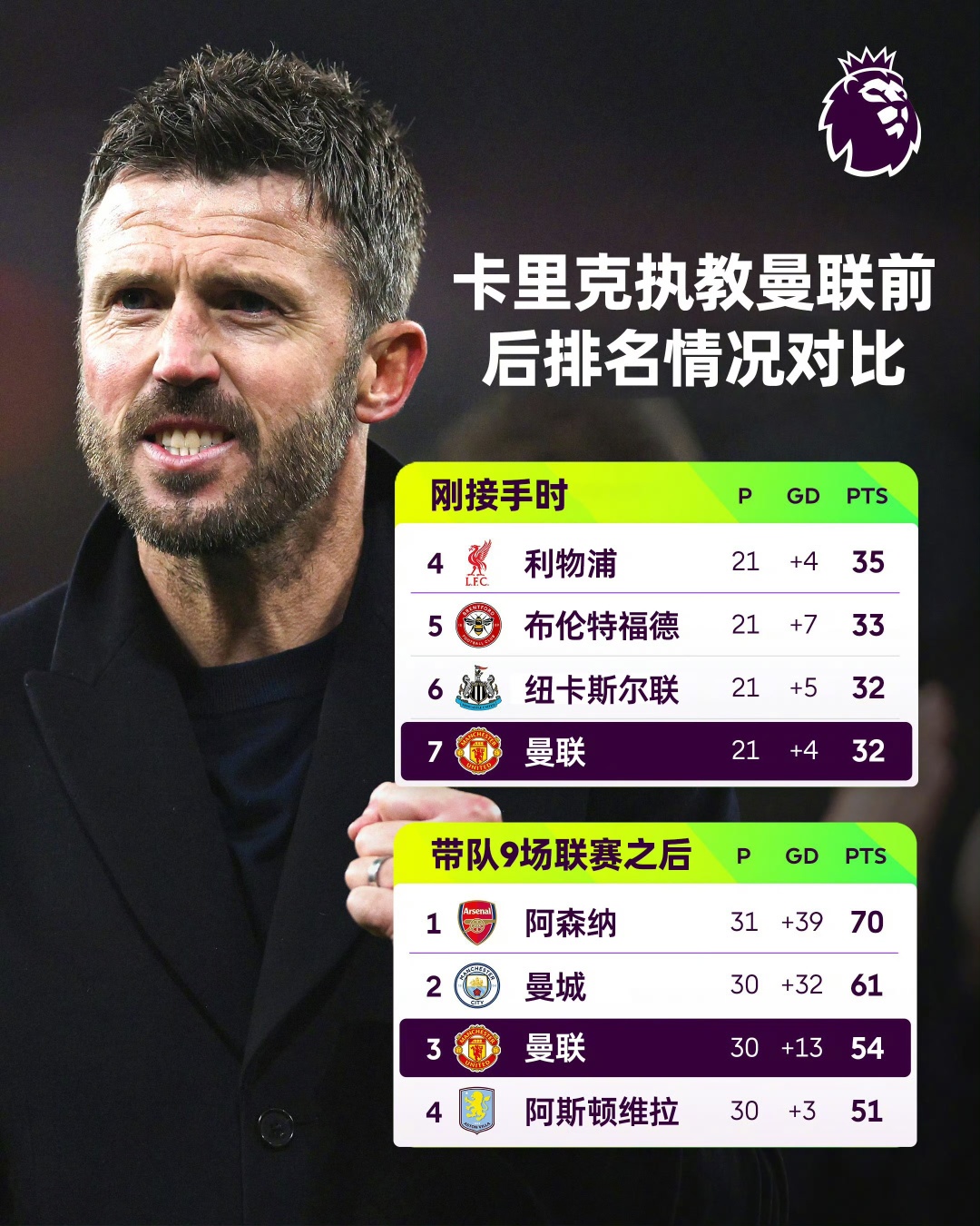 如此耀眼的战绩,自然引发了舆论界关于卡里克是否应该转正的激烈辩论。