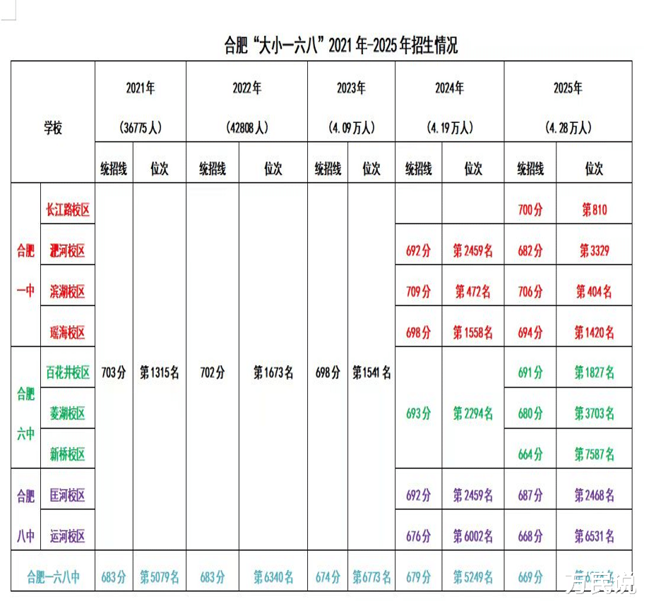 有人把锅甩给“大一六八”多校区扩招,但仔细看:一中滨湖、一中长江路、一中瑶海和中科大附中等好几个校区,位次反而跑赢了大盘。