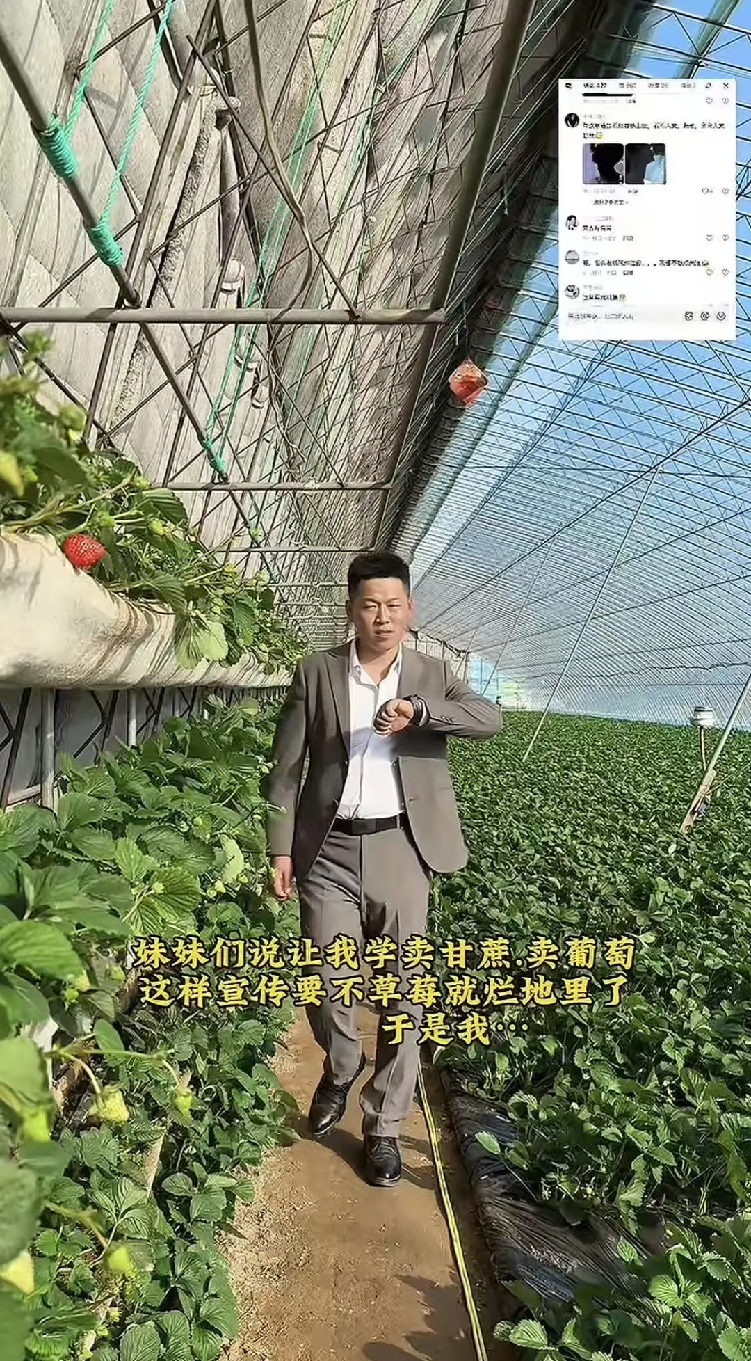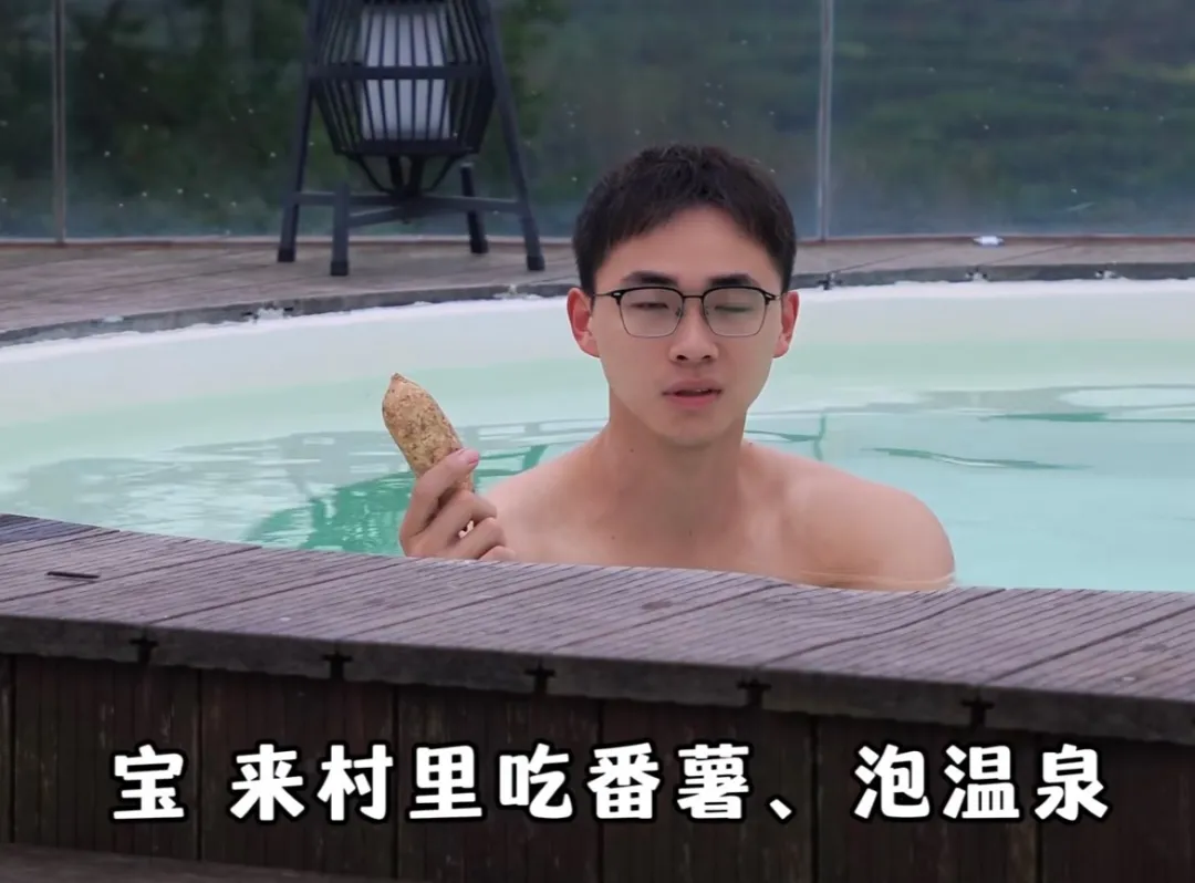 而小白做的远不止于此。为了宣传村里的红薯和温泉民宿,他“放得更开了”: