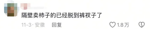 当博主看到评论区“隔壁卖柿子的已经脱到裤衩子了”的时候,他选择了更为“大胆”和“新潮”的拍摄方式。这既是助农短视频的一种同质化的探索,也可以说是这一类视频的“内卷”。