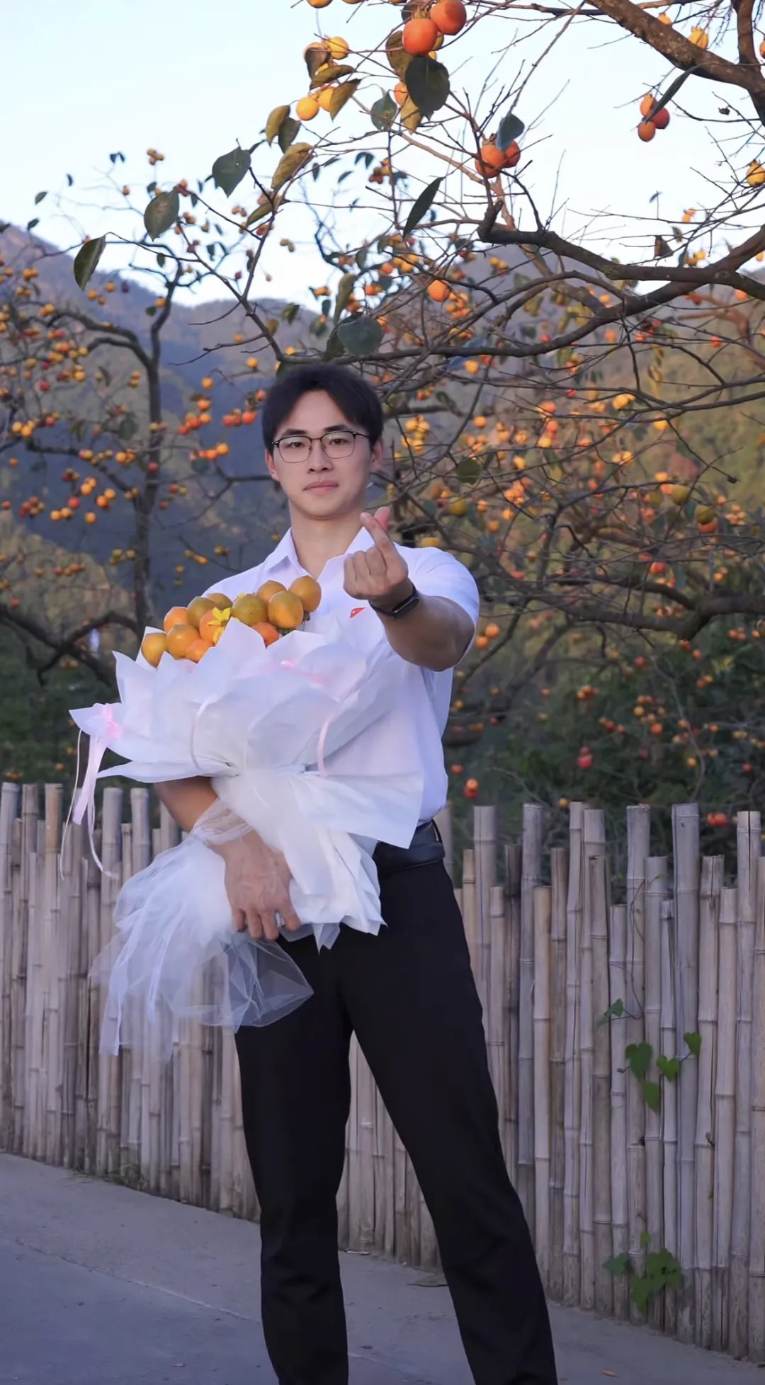 最近刷抖音时看到了这样的视频:绍兴市某村青年干部“林小白”为了帮助村民卖柿子,起初只是穿着板正的中山装、或是衬衫,手捧柿子花束,站在镜头前僵硬地比心,脸上憋出一个有点勉强的微笑。