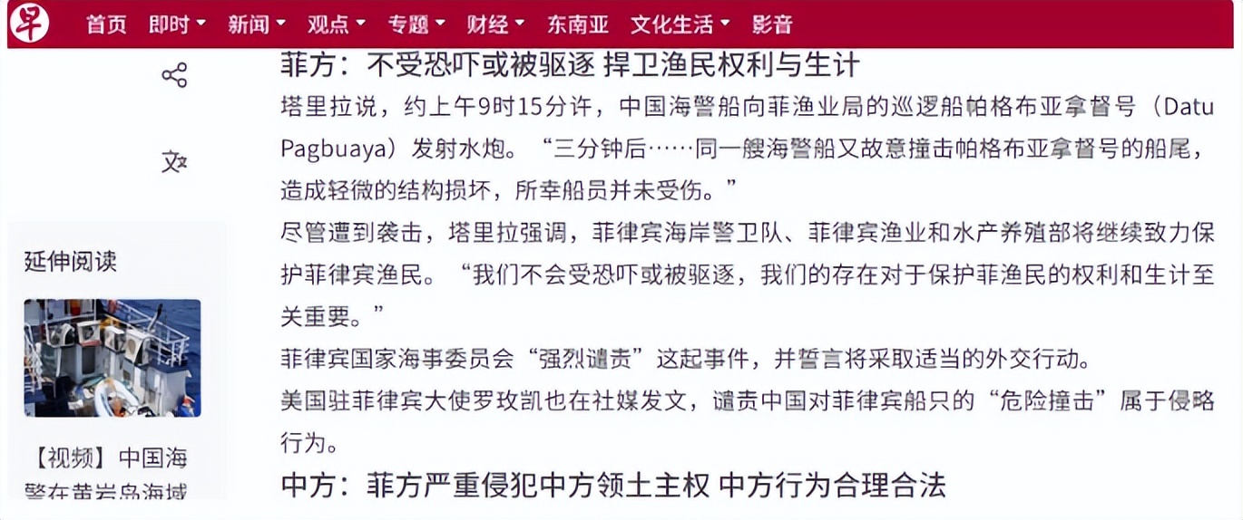 菲船靠近即遭水炮驱离且其强闯行为违反《自然保护区条例》属破坏环境,这恰好击中西方环保软肋。