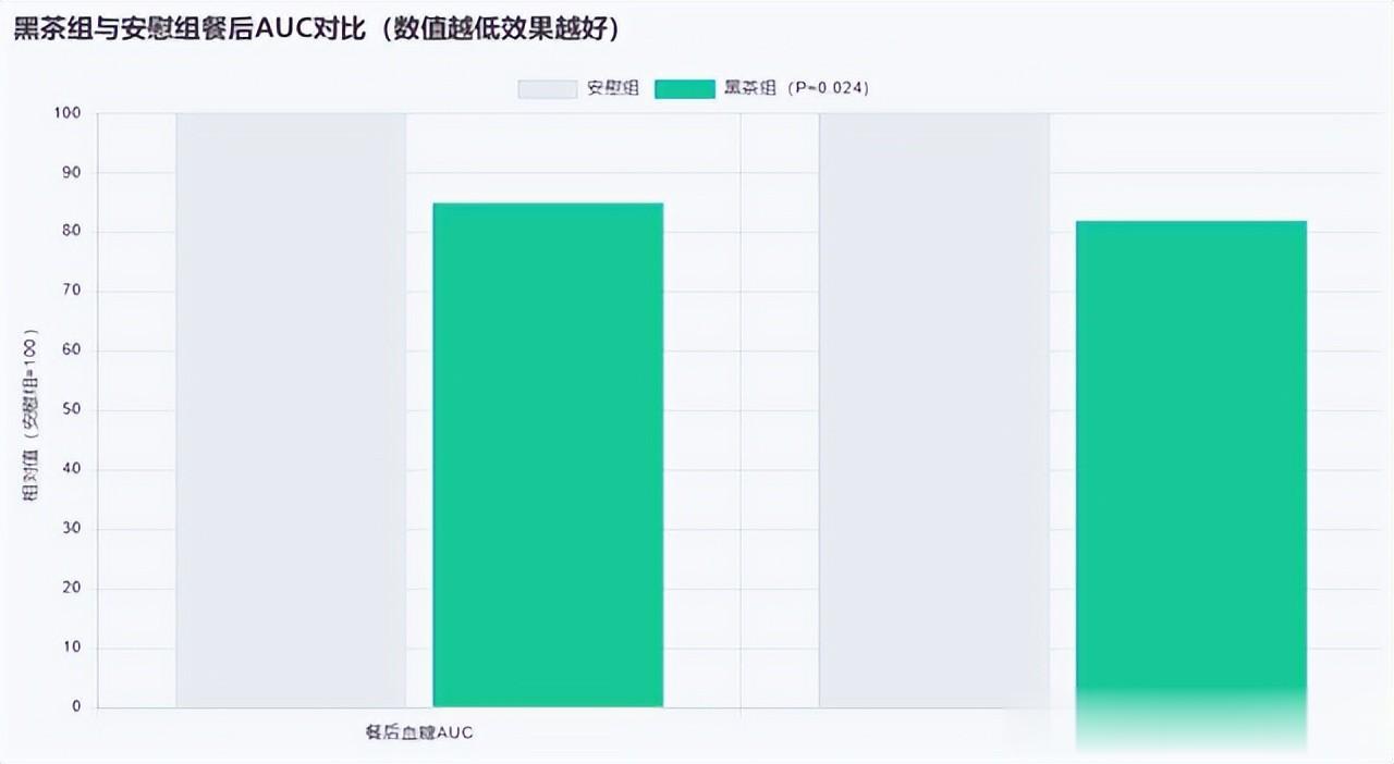 例如,一项随机对照研究《黑茶与餐后糖代谢控制》发表在《健康功能性食品与疾病》杂志中,显示在主食(熟米饭)后饮用含有高分子茶多酚的黑茶,与安慰组相比,餐后血糖曲线下面积(AUC)显著降低(P = 0.024),胰岛素AUC也显著降低(P = 0.014),说明茶多酚可能通过抑制部分消化酶,延缓葡萄糖释放并改善餐后血糖响应。