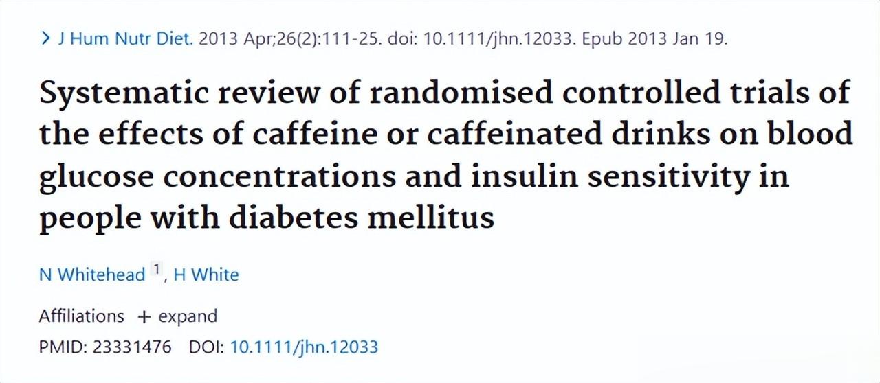 1、人类营养与饮食杂志.对随机对照试验进行系统评价,探讨咖啡因或含咖啡因饮料对糖尿病患者血糖浓度和胰岛素敏感性的影响.2013
