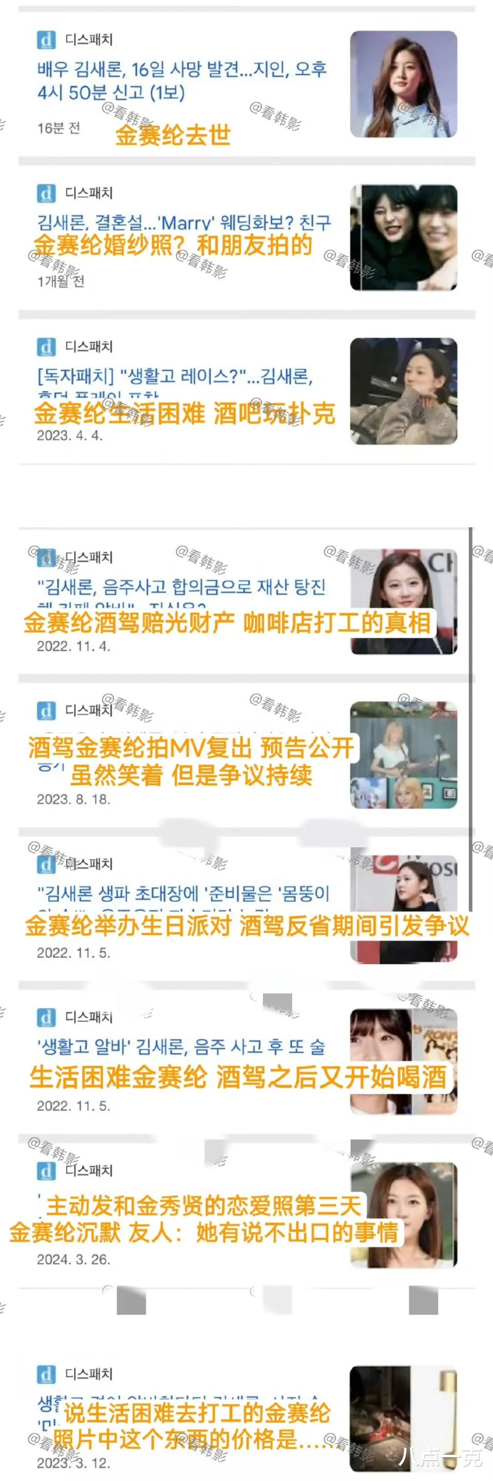 更让人匪夷所思的是,金赛纶的离世日期正好是金秀贤的生日,生前发布两人合影,离世日期还是男方的生日,实在太过于凑巧了。