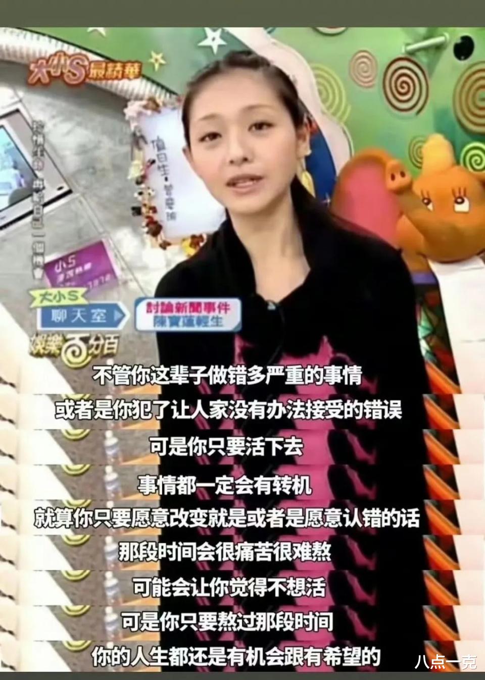 看到金赛纶的经历后,大S这段话的含金量还在不断上升,她曾认真诚恳地对观众说,不管你这辈子做了多严重的错事,或者是你犯了让家人很难接受的错误,可是你只要活下去,事情就一定会有转机的,可能那段时间你会非常痛苦,或者不想活下去,可是只要熬过那段时间,你的人生就还是有机会和希望的。