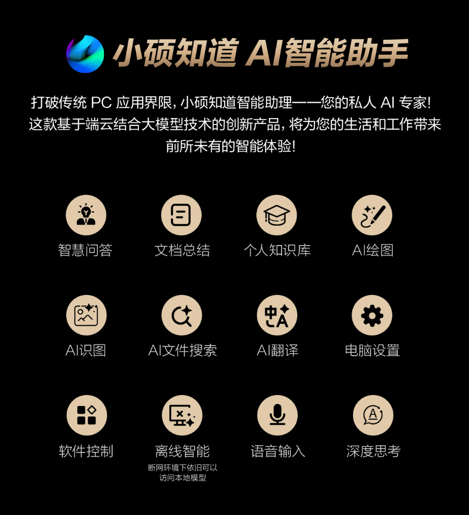 在AI创作成为主流的当下,华硕ProArt 创13 2026的AI功能的加持,让创作效率直接翻倍。内置“小硕知道”AI智能助手,集成智慧问答、文档总结、个人知识库、AI绘图、AI识图、AI文件搜索、AI翻译等功能,整理翻译资料、生成草图都能快速完成。而且它还支持断网本地运行,不管是户外还是没网的会议室,都能保持高效创作。还有即将上线的MuseCenter图像生成应用中心,涵盖灵感地图、灵感画布、灵感库三大核心功能,助力设计师突破灵感瓶颈。