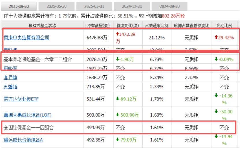 机构动态:二季度前十大流通股东加仓1.06亿股,5加仓1新进。其中,控股股东加仓9603万股;北向资金加仓387万股,重仓5.44亿股;全国社保基金118组合加仓425万股,重仓1.23亿股。