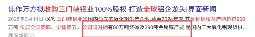 金属镓:其收购三门峡铝业氧化铝权益产能超过900万吨,位居全国第四、全球第五。公司同时拥有50万吨烧碱及290吨金属镓产能。